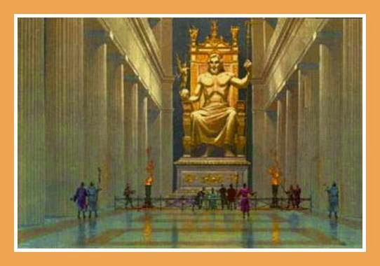 A Estátua de Zeus foi construída no séc. V a.C., pelo ateniense Fídias, como forma de homenagem ao rei dos deuses gregos, Zeus. Acredita-se que a construção da mesma tenha levado cerca de oito anos a ficar completa, e possuía um altura entre os 12 a 15 metros de altura e era toda de marfim e ébano, enquanto os seus olhos era feitos de pedras preciosas.