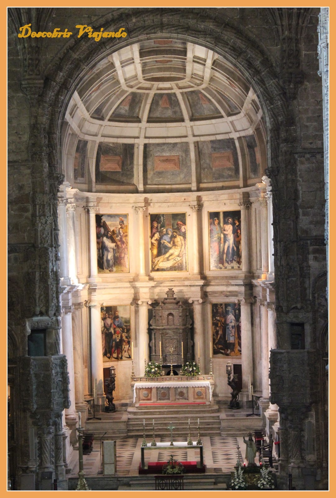 A actual capela-mor foi mandada construir pela Rainha D. Catarina, tendo sido inaugurada em 1572, o que leva a que haja claras diferenças entre a arquitectura deste local e a restante igreja. Ao fundo da capela mor é possível ver cinco bonitas pinturas, de Lourenço de Salzedo, que representam a Paixão de Cristo e a Adoração dos Reis Magos.