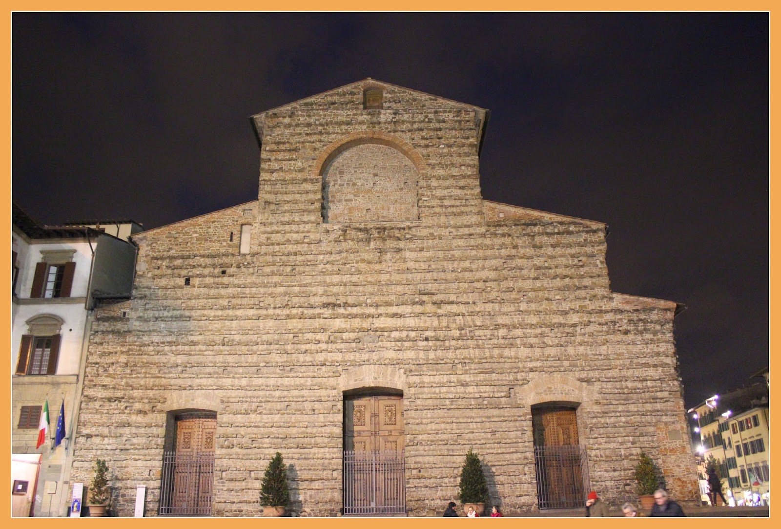 Fomos directos à Igreja de Todos os Santos, que é uma igreja franciscana, dedicada a todos os santos e mártires, conhecidos e desconhecidos. Sofreu a sua maior reconstrução em 1627, segundo os desenhos de Bartolomeo Pettirossi. Possui um belo campanário medieval e uma bonita fachada barroca, de Matteo Nigetti. Tendo sido um dos primeiros exemplos deste estilo na cidade.