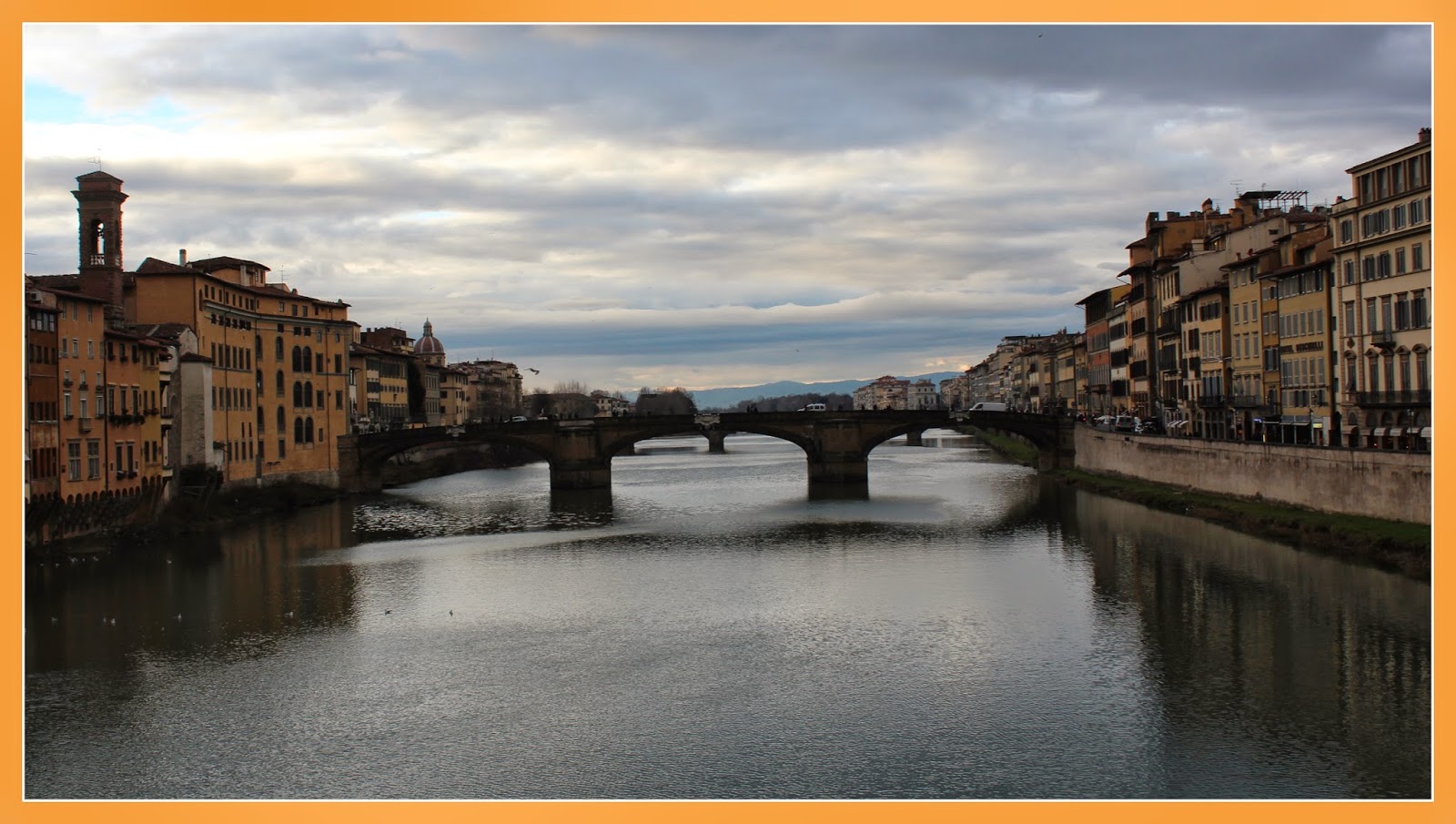 Assim que saímos da igreja e caminhámos em direcção ao Rio Arno, vimos a bonita Ponte da Santa Trindade, da época do Renascimento, sendo a mais antiga ponte do mundo de arco elíptico. A Ponte actual foi construída pelo arquitecto florentino Bartolomeo Ammanati, no séc. XVI. Mais tarde, foram acrescentadas quatro estátuas ornamentais representando as estações do ano, como parte das celebrações do casamento de Cosimo II de Médici com Maria Madalena da Áustria. A Primavera foi esculpida por Pietro Francavilla, o Verão e o Outono por Giovanni Caccini e o Inverno por Taddeo Landini.