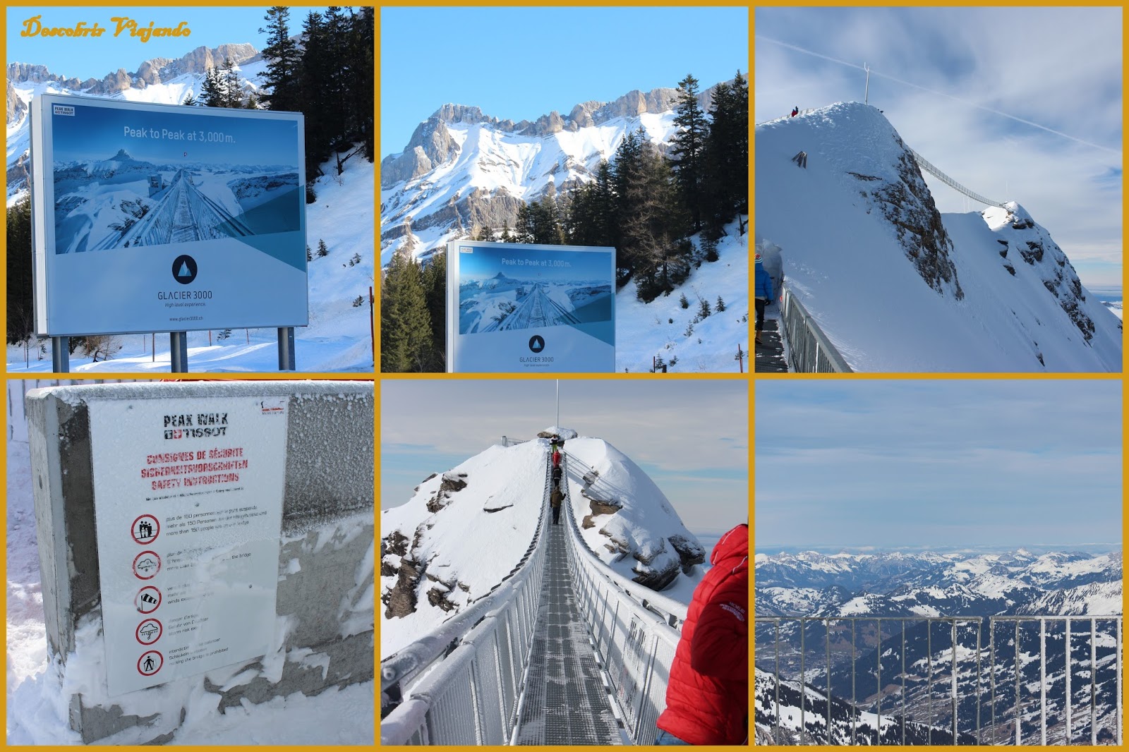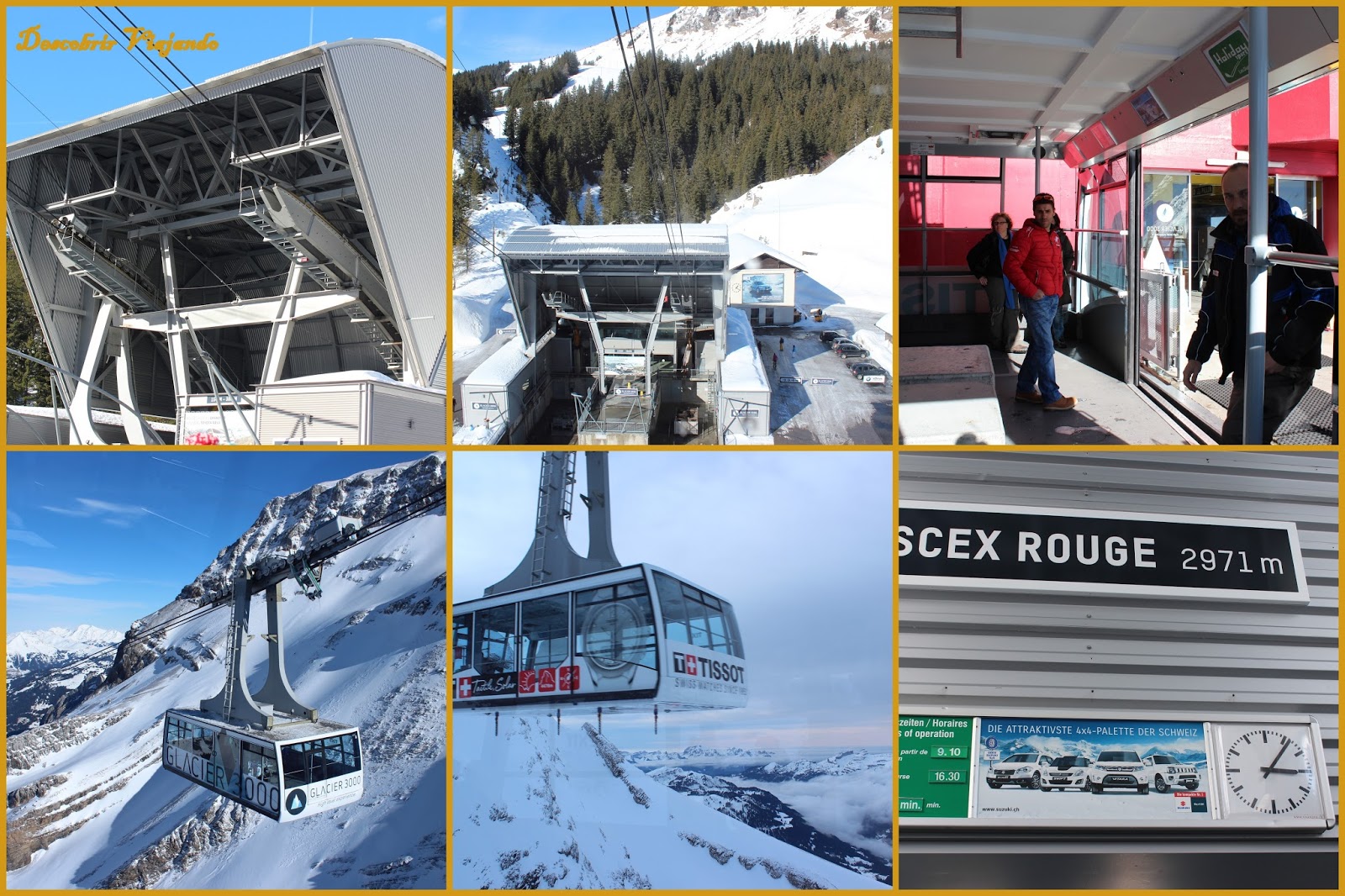 De Scex Rouge até chegar aos 3000 metros o percurso é feito a pé, passando por uma ponte suspensa ( a 107 m) até chegar ao miradouro situado a 3000 metros.