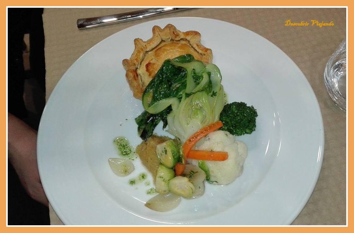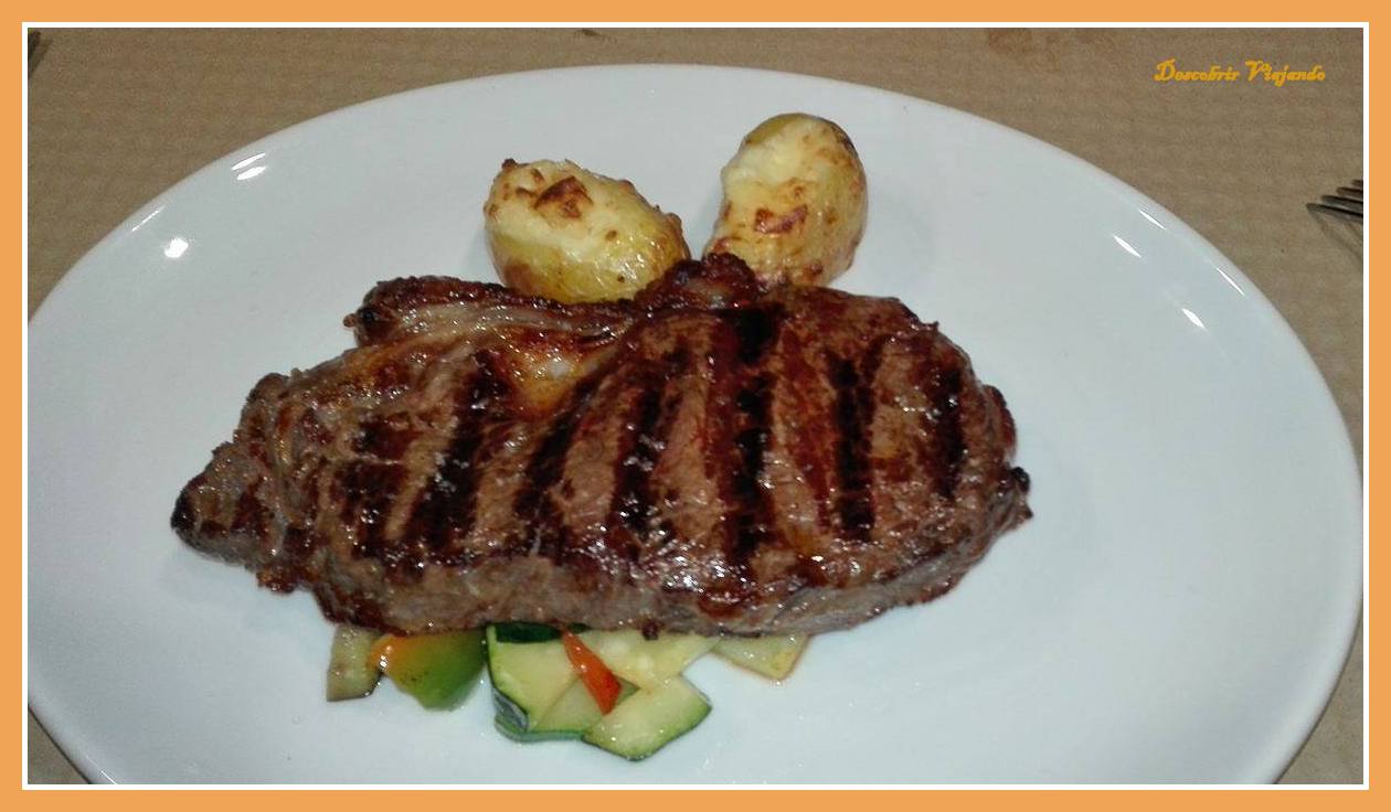 | Vazia de Novilha, batata recheada com Queijo Rabaçal e legumes salteados |