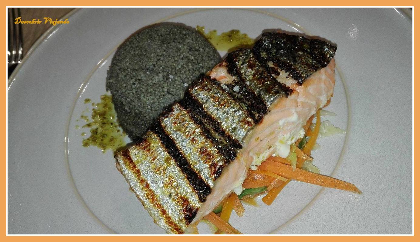| Salmão corado em Ervas Aromáticas com couscous de tinta de Choco |