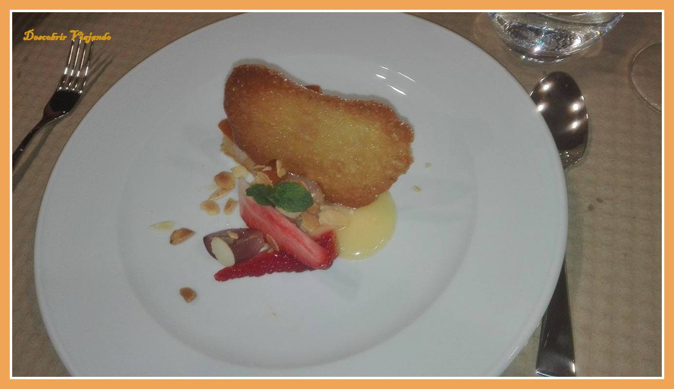 | Pudim Abade de Priscos, lemon curd e amêndoas salgadas |