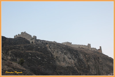 Saindo do museu e continuando a subir a colina chegámos a uma praceta onde descansámos um pouco e aproveitámos para tirar fotos. Seguindo, depois em direcção ao Castelo de Tourbillon. Este terá sido construído no séc. XIII, a mando do bispo Boniface de Challant, para servir de sua residência, tendo-se tornado um símbolo visível do poder secular eclesiástico. Mais tarde, já no séc. XVIII, um gigantesco incêndio na cidade, reduziu o castelo a cinzas, tendo sido mais tarde reconstruído.